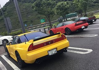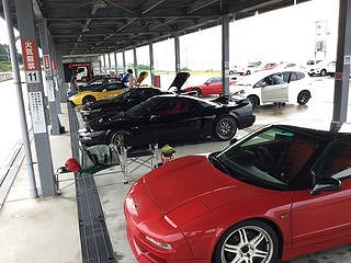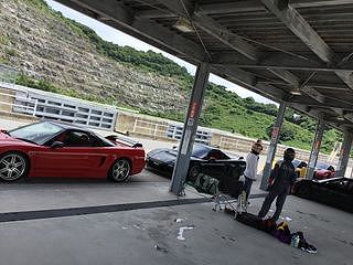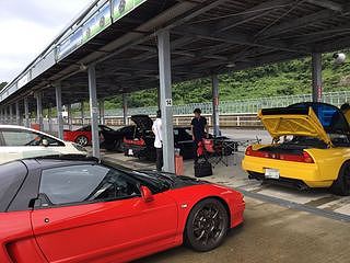 ピット前にスタンバるNSXたち。 気持ちも昂ぶります。 |