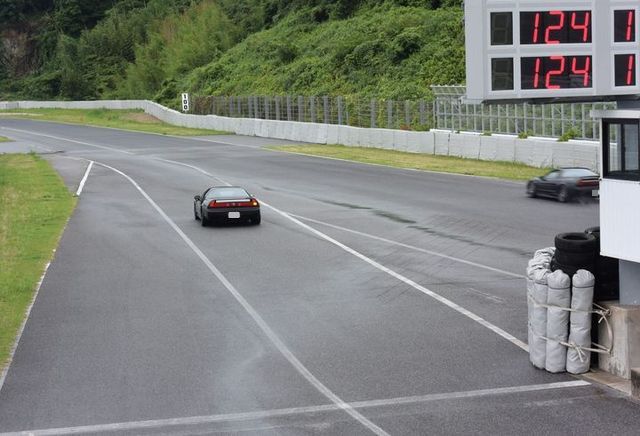 さあ、まずは1本。 路面はまだウェットですが 熱い走りで水分を吹っ飛ばしちゃおう! |