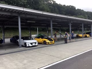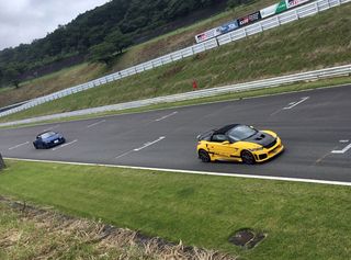 ひと休みしたところで 2本目スタート! 走る姿も様になる、 レーシーS660の競演。 |