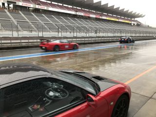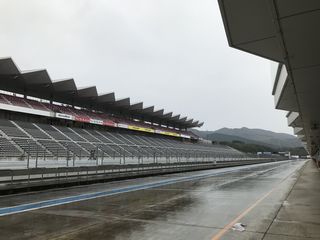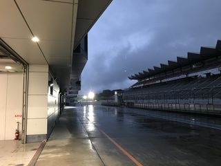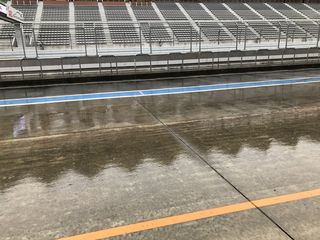 止まない雨の下、 ピットにてコースインを待ちます。 |