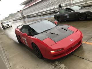 今回も1時間半の長丁場、 何度もピットインして休憩しながら走行。 ゼッケンが雨で飛んじゃってますね(^^;)。 |