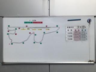 本日のコンディションをボードにて確認。 気温も低く、これは好タイムが期待できそう! |