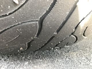| よく見たら リアタイヤからスリップサイン! 右リア、完全に トレッド面と一体化しちゃってます(^^;)。 |