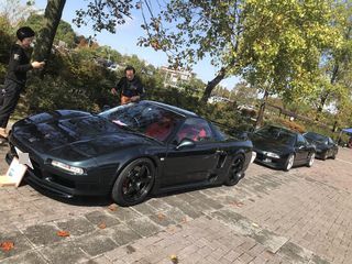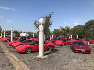 | 続々と集まってくるNSX。 今回の参加台数は 全部で101台だったとか。 |
