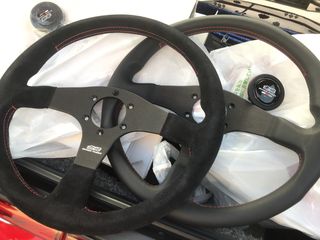 | ウワサの無限ステアリング持ってるよ〜 ということで、見せてもらいました。 バックスキンとレザーの2タイプを ご夫婦で1本ずつ確保されているというのが 何とも・・・(^^;)。 しかし良いなあ、これマジで欲しい! |
