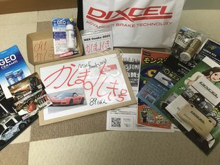 | 帰宅後、もらったものを整理。 ご覧の通り、協賛品がいっぱいです。 ちなみにこのプレート、なんと 手書きのメッセージ付きでした! こういった心配りがウレシイですよね。 改めましてありがとうございました。 |