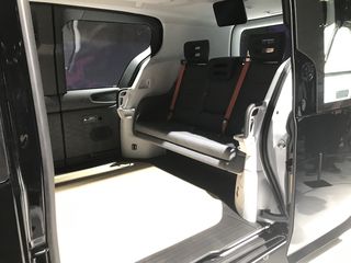 | 自動運転タクシーサービス用の専用車両。 広々とした室内は 対面6人乗りで、運転席はなし! |
