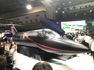 | ホンダジェットの新型・・・の胴体。 中に乗れるようになってましたが、 行列だったのであきらめました・・・ |