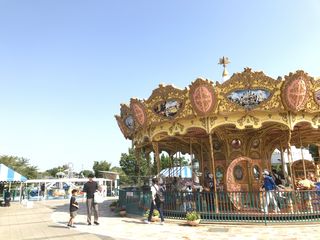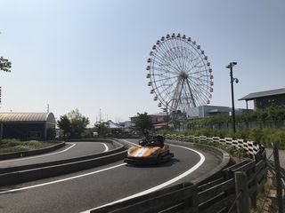 | 名物の観覧車をバックに ゴーカートが走る! 将来のドライバーですね(^^)。 |