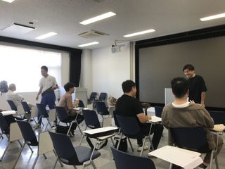 | さあ、合流組が揃ったところで 本格的に?開会、開講式がスタート。 各自、簡単な自己紹介のあと お馴染みの特別講師ガンさんから ドライビングに関するアドバイスを 拝聴します。 |
