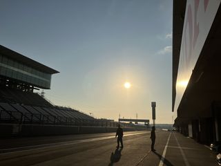 | 再びやってきました、 鈴鹿サーキット! 朝日が眩しいぜ(^^)。 |