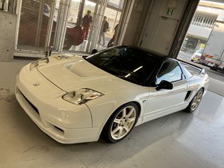 | 帰り際、通り沿いのHCMさんの 店舗前でたまたま信号待ちしたので パシャリ。 ショールーム内、無限仕様のNSXが 展示されていました。 |