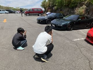 | 同じタイミングでもう1台、 通りすがりの方をせっかくなので 招き入れて、しばしNSX談義。 こういうのも同一車種ならではの 光景ですね! |