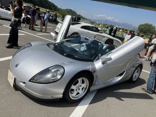 | これは珍しい、 ルノースポール・スピダー(スパイダー)。 日本に100台しかないレアもの! 実車は初めて見たかも・・・ ドアの開き方も特徴的ですね。 |