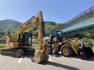 | 土木系の車両も。 こういうのが好きな子供たちも たくさんいますよね〜 運転席に座れたようで、 けっこう賑わってました(^^)。 |