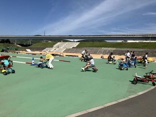 | おもしろ自転車で 楽しむ子供たち。 将来はどんなクルマに 乗ることになるかな〜?? |