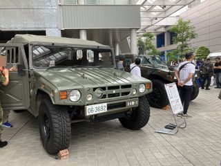 | 会場入り口には 自衛隊車両が数台 展示されていました。 お勤め、おつかれさまです! |
