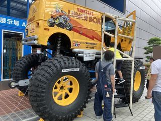 | 自衛隊車両の隣には 実物大のランチボックスが。 タイヤの直径が大人とほぼ同じ! 半端ない大きさが良く分かります。 |