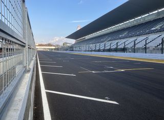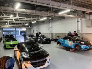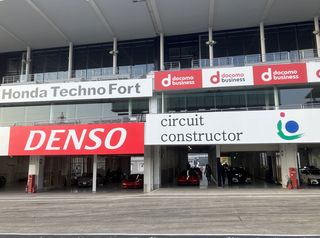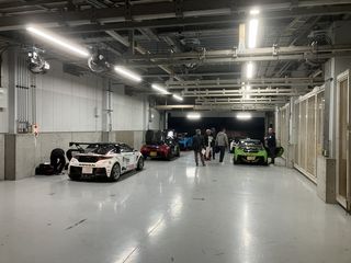 | ドラミのあとは ピットに戻って最終チェック。 コース側から望むピット、 ホンモノっぽくて良い雰囲気♪ |