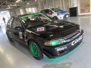 | お隣りのピットには 懐かしのEG6!オオモリショウタさん。 カリカリのEGシビック見ると 後輩を思い出します。 けんたろうくん、元気? |