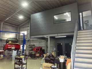 | 2Fには事務所と 打ち合わせ用のスペース、 その下には待合コーナーも。 ここで愛車の作業を見守るのも 楽しそうです(^^) |