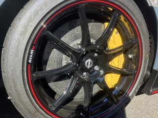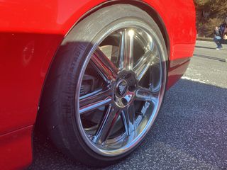 | メタリックが眩しい19インチ! あえて引っ張り気味にして フェンダー干渉を避ける、 こんなやり方もあるんだなと 勉強になります(^^) |