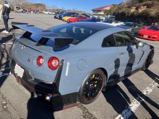 | そこへ naka-daiさんが到着、噂の "R35 GT-R NISMO" ついにお披露目です! S-ZEROの代替えかと思いきや まさかの増車、スゴイぜ!! |