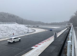 | やきもきしてても 埒が明かないので、 参加者のご紹介といきましょう。 走行会参戦は久々の イカワさん、今日はFK8で! |