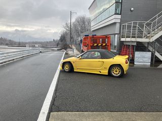 | 見覚えのあるおクルマ発見。 週末のK4GP用に スタンバイ中かな? |