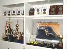 店内には、オリジナルカーボンパーツや数々のトロフィー、スーパー7の模型などが