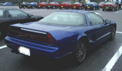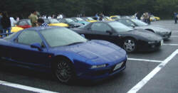 今回集まったNSXは3台。手前から、 天照大皇神様S (青)、black arrowさんクーペ (黒)、 岐阜から参加のokuさんクーペ (銀)。 |