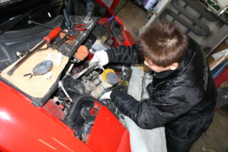 K○Pメカニックさんの手により 手際よく外される旧ユニット。 なんだかデカイのが出てきた! |