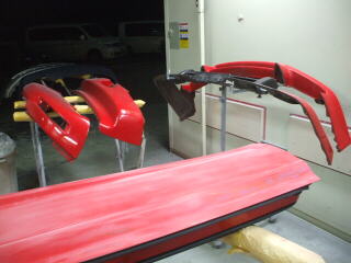 まずは下準備、 バンパー、フェンダー、ドア、その他小物諸々 外せる部分は全部外します。 |