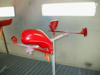 下塗りが済んだら いよいよ本塗り。 密閉・空調管理されたブース内で ばっちり塗装&乾燥を。 |