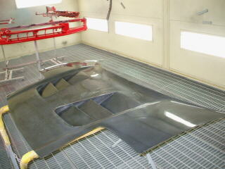 今回は、悩んだ挙句 カーボンボンネットは敢えて塗装せず クリアのみ吹いてもらいました。 塗った方が大人しくなるんだろけど もうしばらくは子供でいこうかな、と。 |